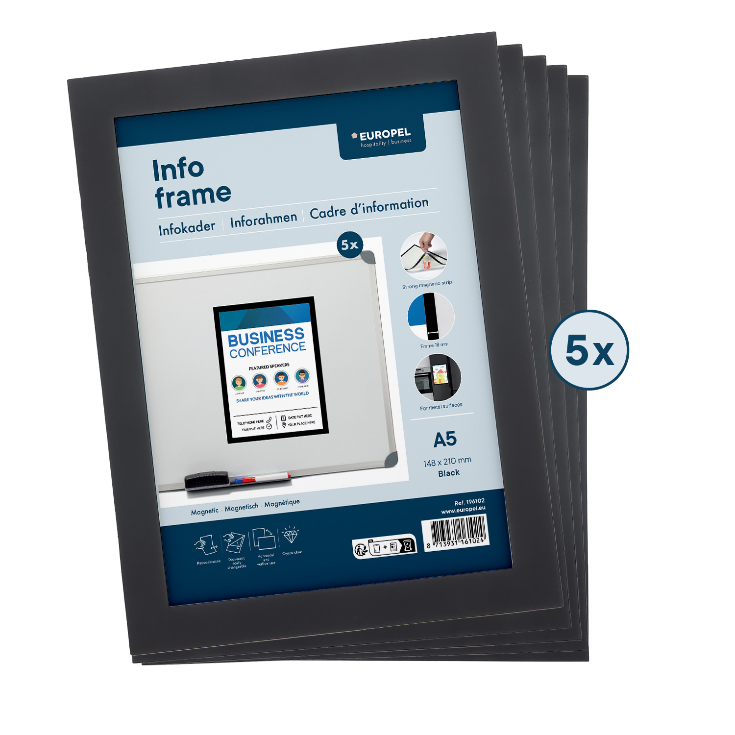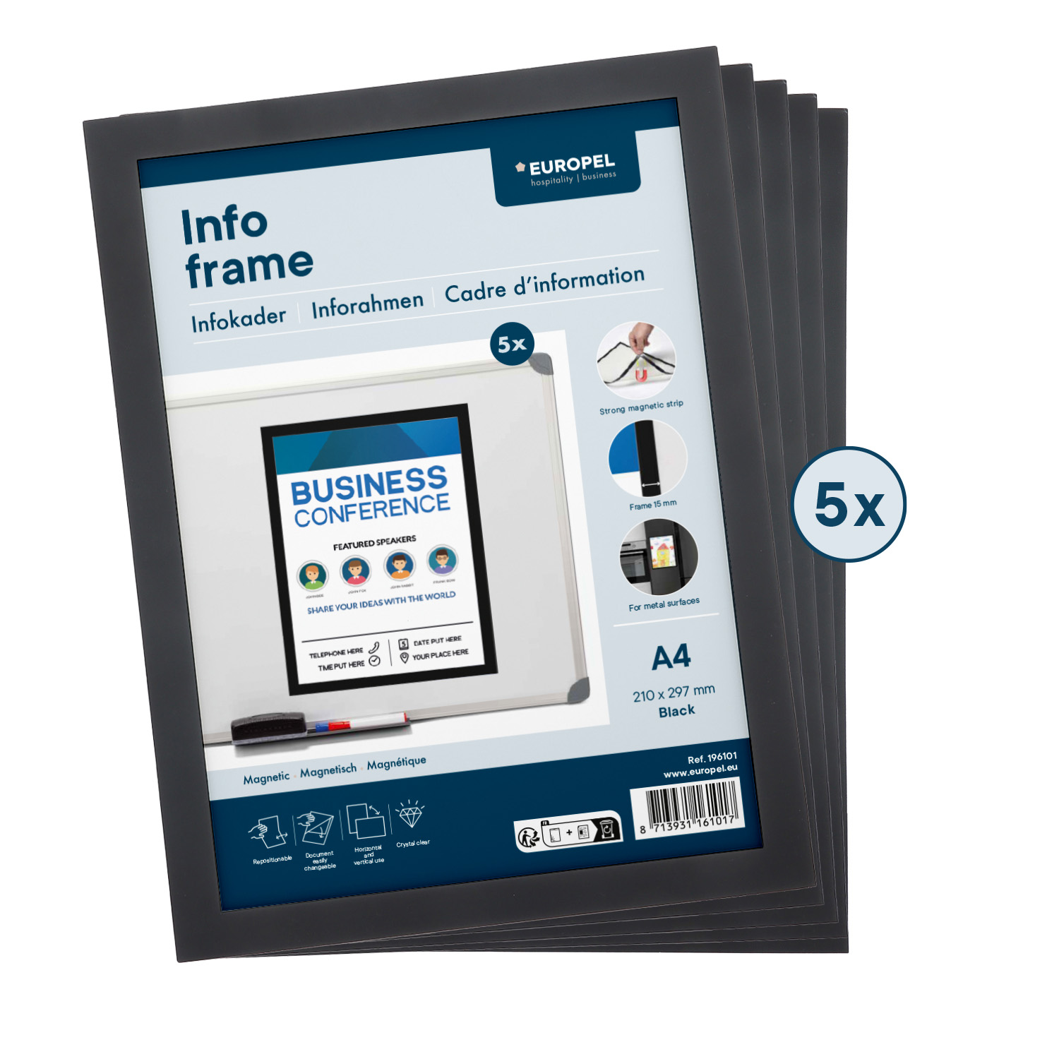 Met onze infokaders geef je jouw documenten een stijlvolle en professionele uitstraling. Onze infokaders zijn geschikt voor gebruik op kantoor, in hotels, scholen en andere openbare ruimtes. Dankzij het magnetische frame kun je de boodschap eenvoudig wisselen en blijft het document altijd goed zichtbaar.
