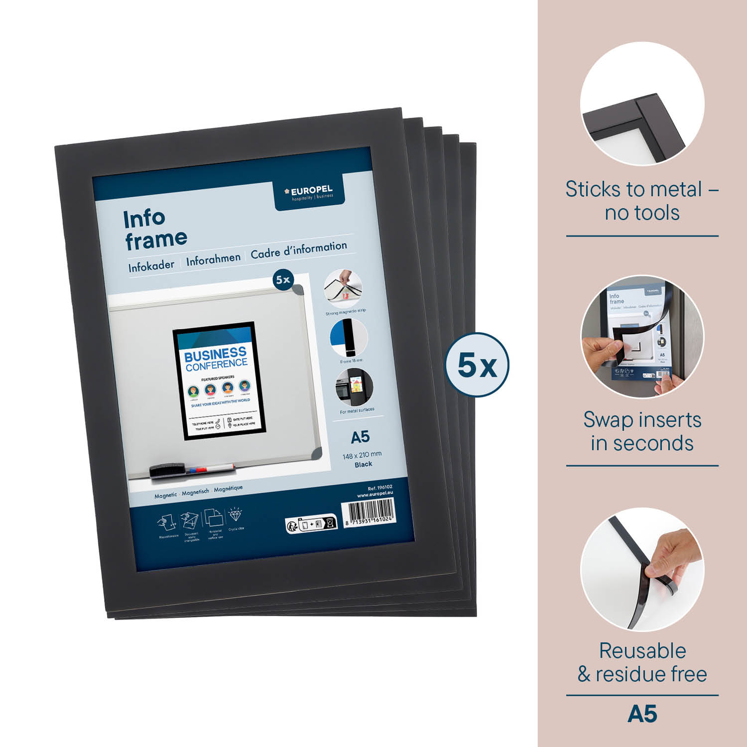 Europel Infokader Magnetisch set 5 stuks A5 Zwart