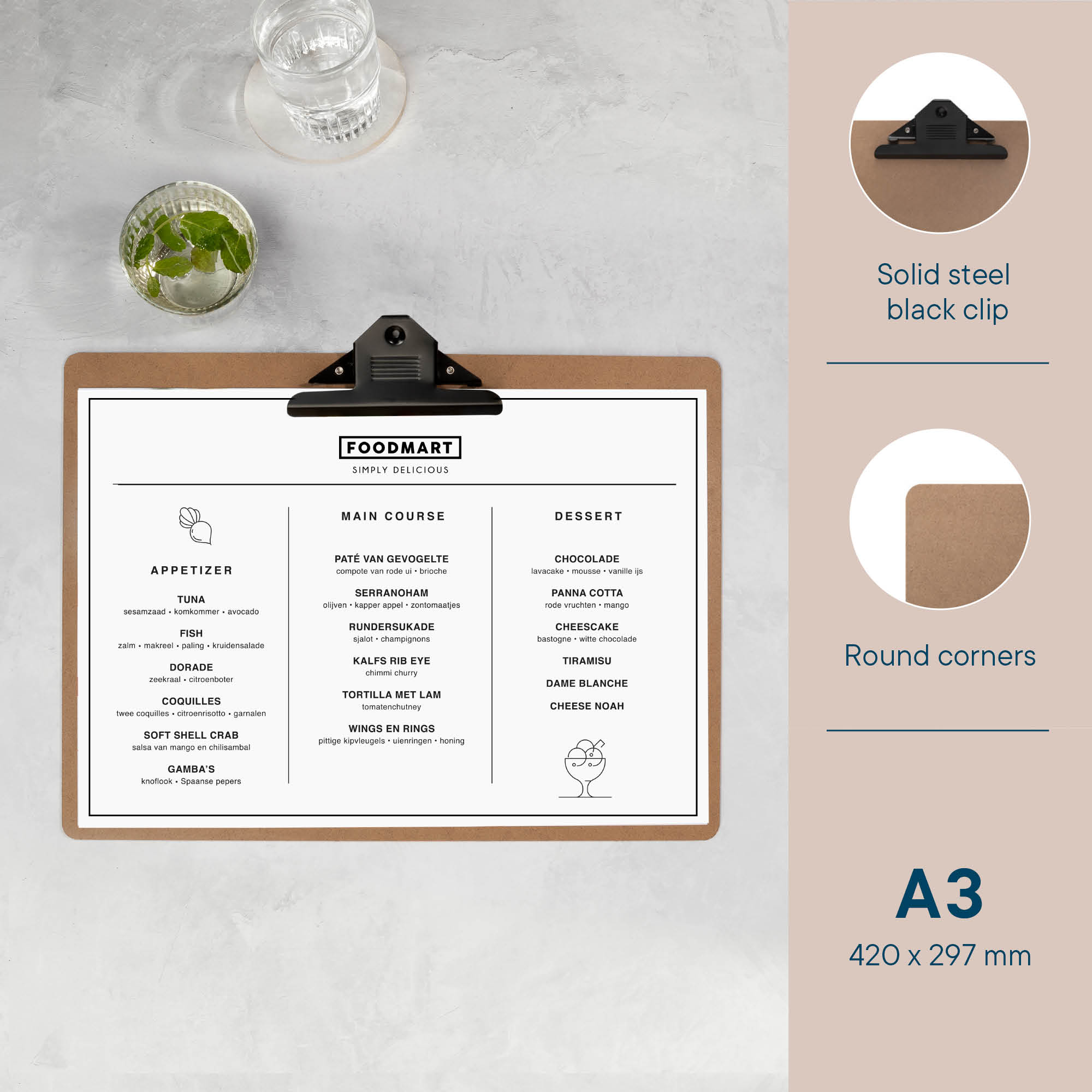 *Stevig MDF klembord met een natuurlijke uitstraling.